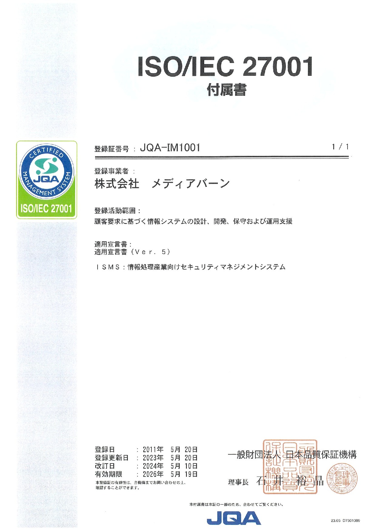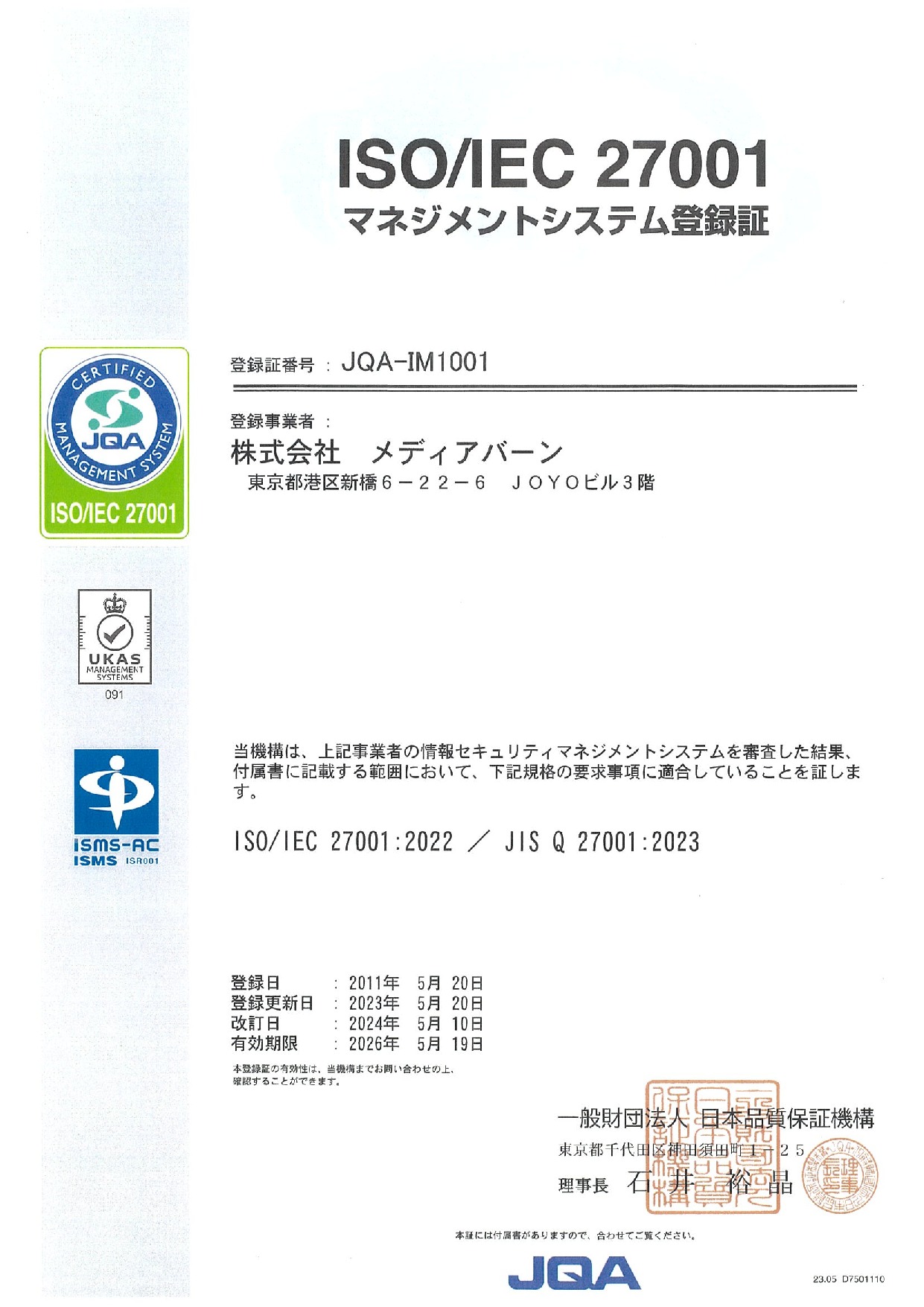 認証基準 ISO / IEC27001:2022 / JISQ27001:2023